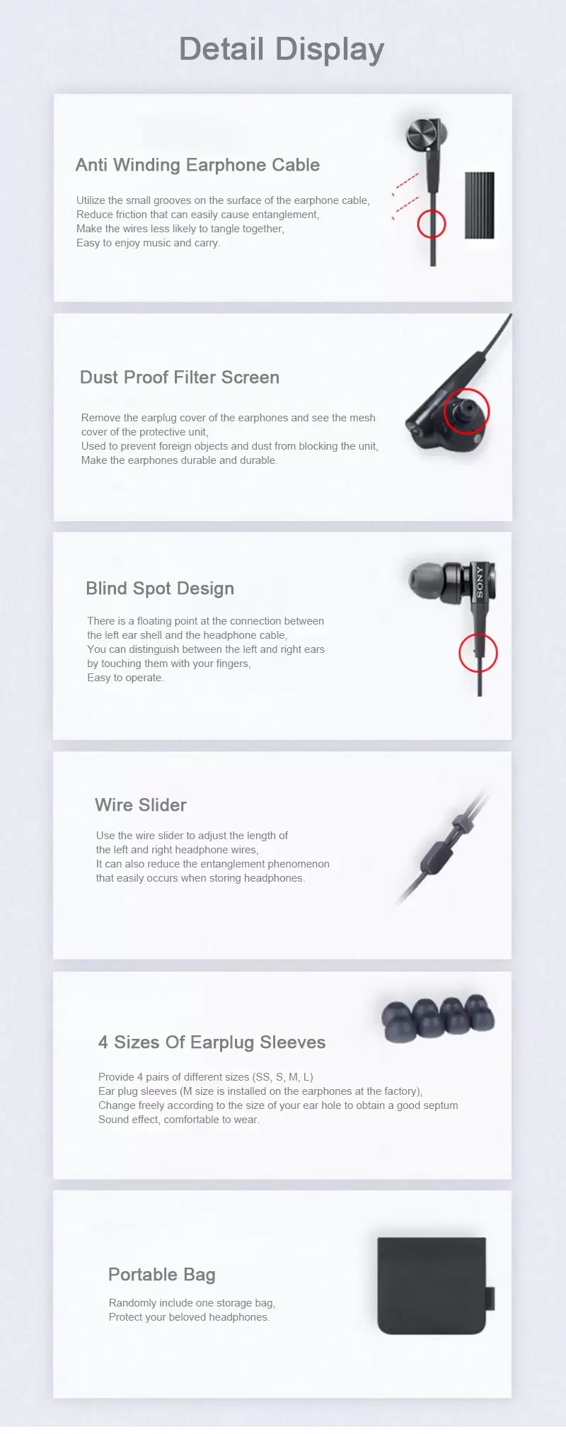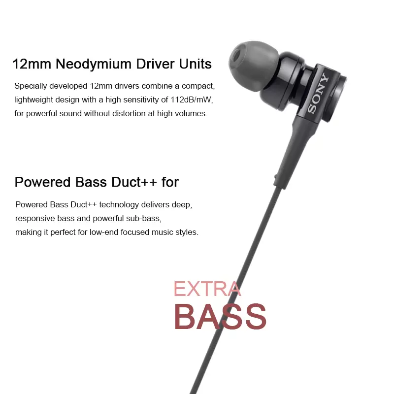 Sony MDR-XB75AP Wired Earphones Extra Bass In-Ear Headphones With Tangle Free Cable 3.5mm Jack Headset With Mic For Phone Calls